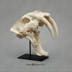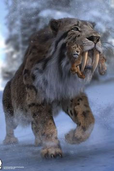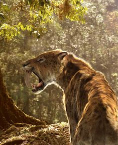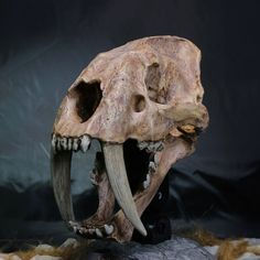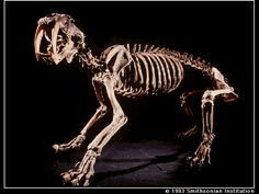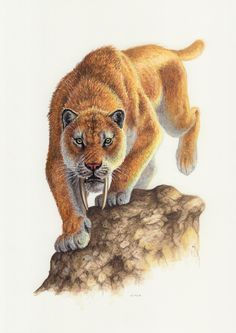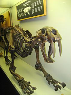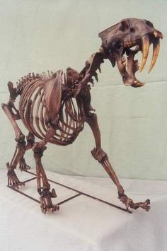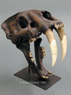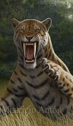 Smilodon is a genus of felids belonging to the extinct subfamily Machairodontinae. It is one of the best known saber-toothed predators and prehistoric mammals. Although commonly known as the saber-toothed tiger, it was not closely related to the tiger or other modern cats. Smilodon lived in the Americas during the Pleistocene epoch (2.5 mya – 10,000 years ago). The genus was named in 1842 based on fossils from Brazil; the generic name means "scalpel" or "two-edged knife" combined with "tooth". Three species are recognized today: S. gracilis, S. fatalis, and S. populator. The two latter species were probably descended from S. gracilis, which itself probably evolved from Megantereon. The hundreds of specimens obtained from the La Brea Tar Pits in Los Angeles constitute the largest collection of Smilodon fossils.